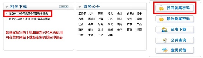 備案密碼找回方式分為兩種: