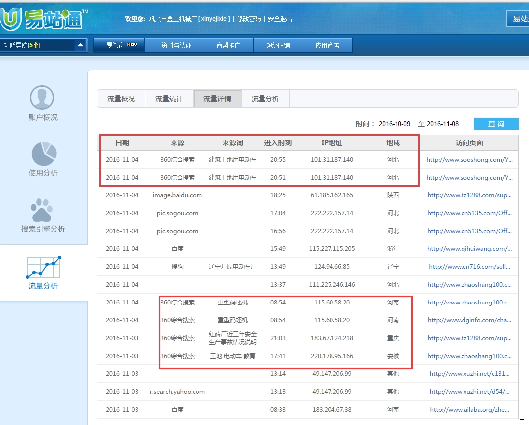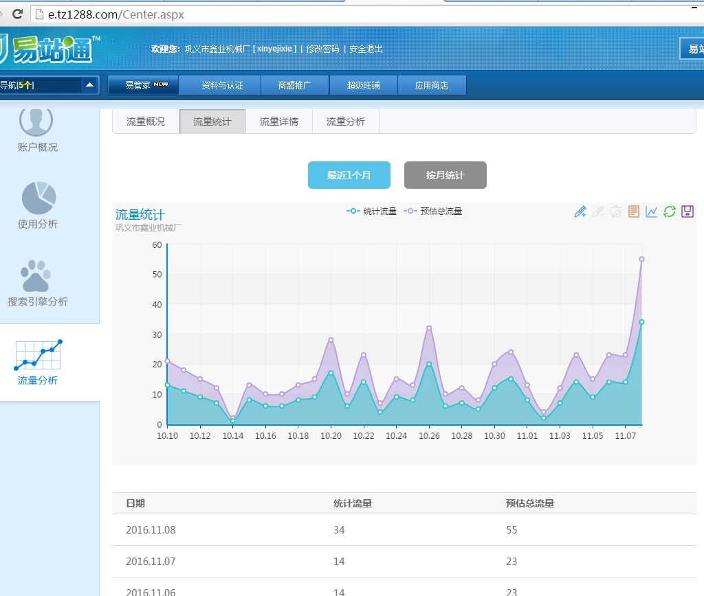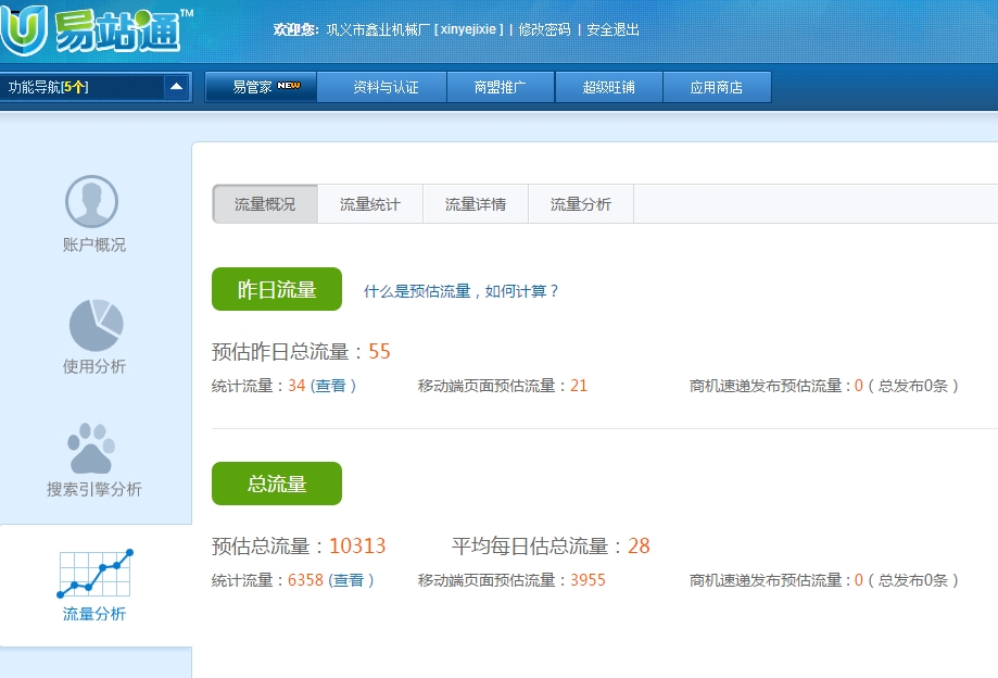 鑫業(yè)機(jī)械易站通流量分析【每天可以預(yù)估到的流量(如上圖)】