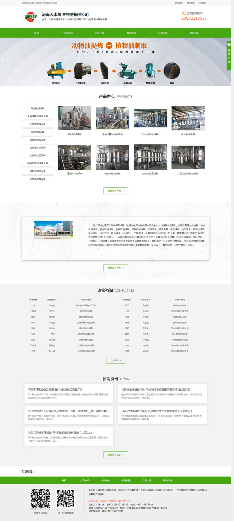 河南天豐糧機1月份動植物油設備2個單品網(wǎng)站制作成功