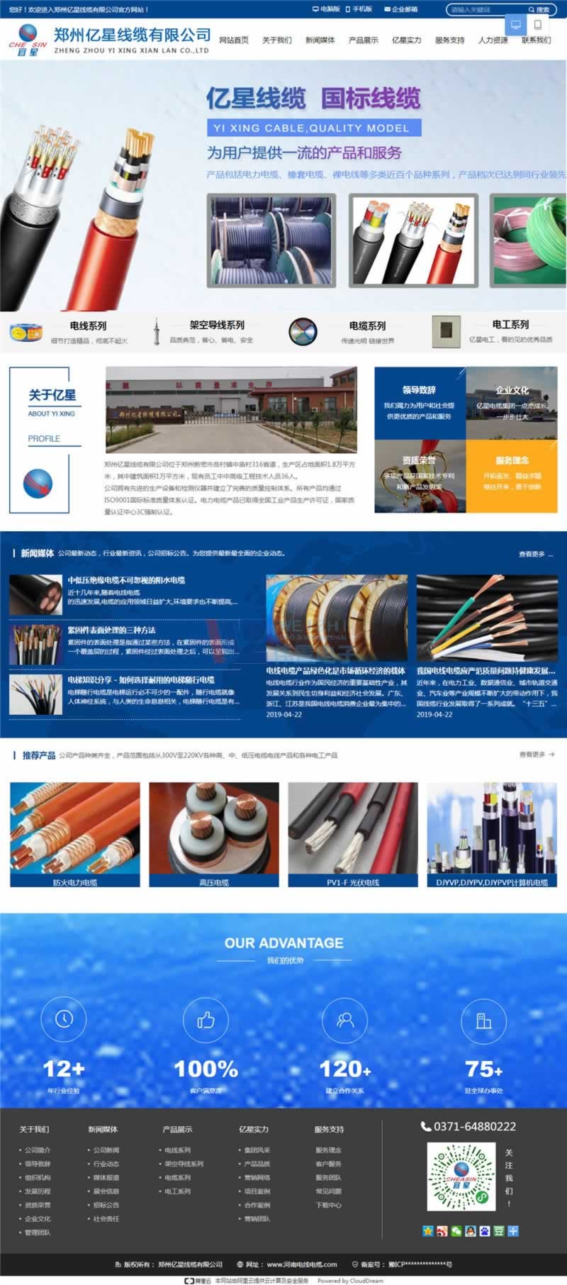 鄭州億星電力線纜整站布局采用長(zhǎng)屏版式,色彩飽滿豐富,清晰的展示了該公司、產(chǎn)品、新聞等內(nèi)容。圖片效果體驗(yàn)更好。