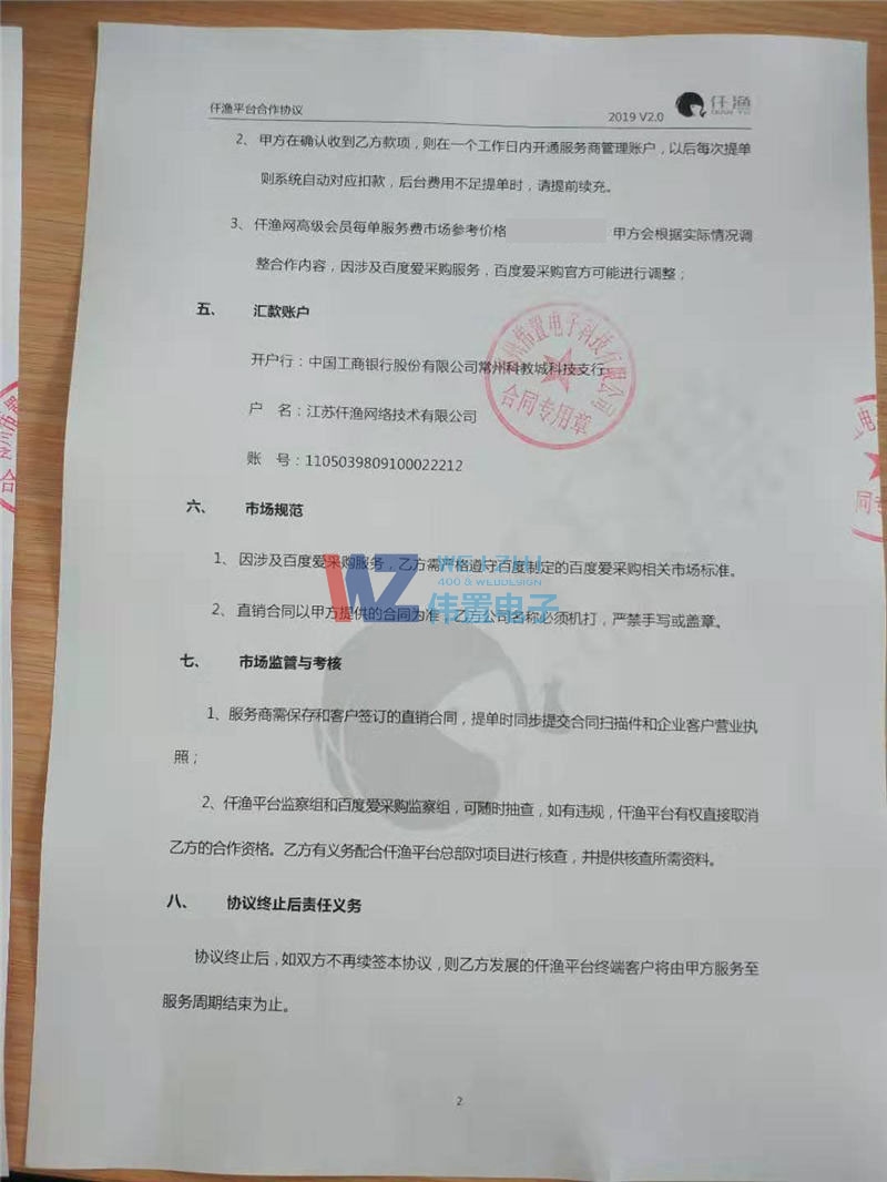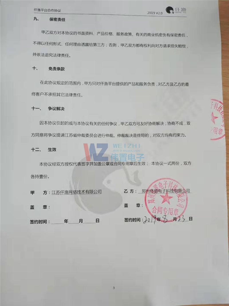偉置電子網(wǎng)站建設(shè)公司與仟漁平臺合作協(xié)議