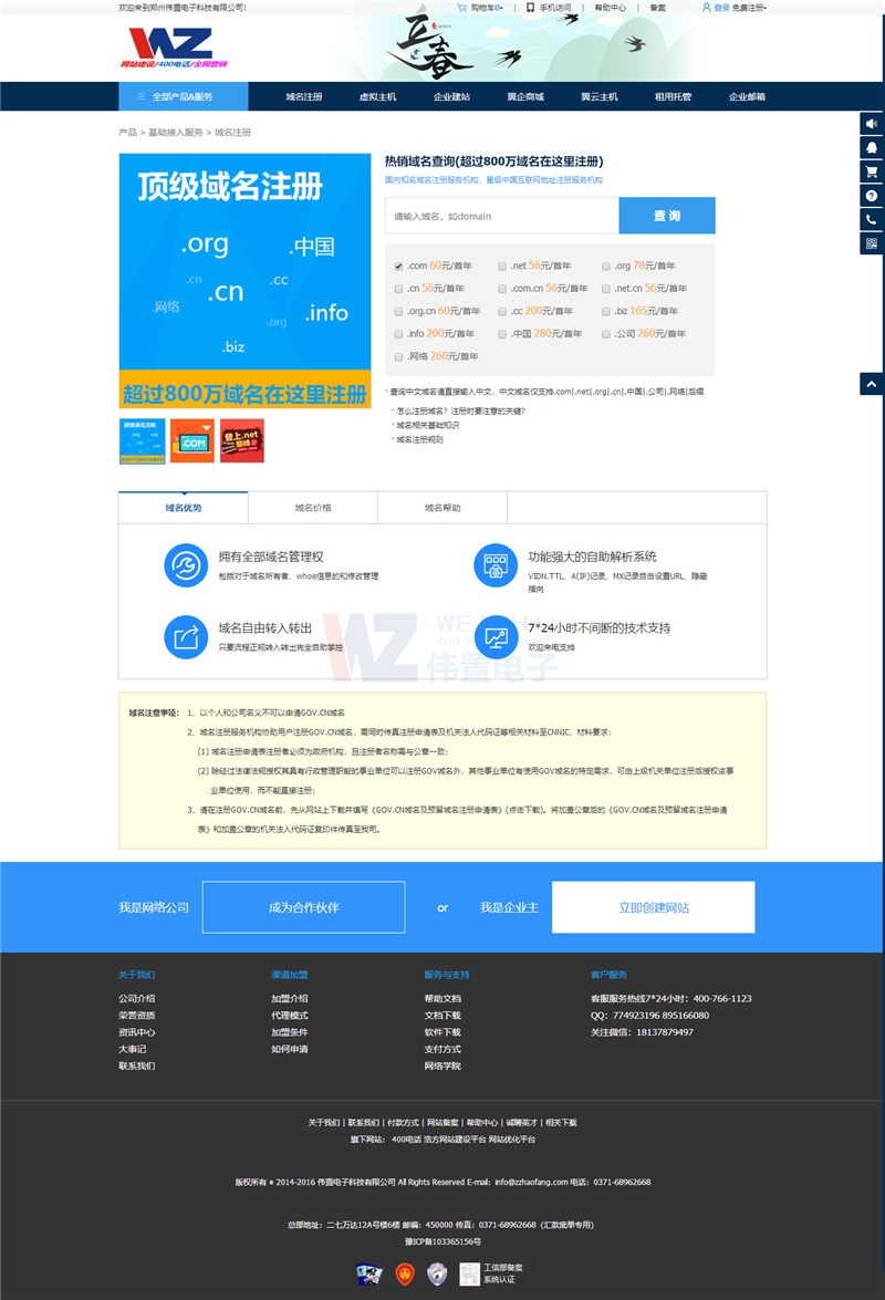 鄭州偉置電子科技智能建站平臺(tái)http://ys.zzhaofang.com為您提供域名注冊(cè)、虛擬主機(jī)、企業(yè)建站、翼企商城、翼云主機(jī)、租用托管、企業(yè)郵箱等服務(wù)。該網(wǎng)站建設(shè)公司專注于為您提供入門版、標(biāo)準(zhǔn)版、高級(jí)版、旗艦版等網(wǎng)站建設(shè)服務(wù),建站價(jià)格比較優(yōu)惠,性價(jià)比業(yè)比較高,如果您有這方面的需要,我們公司是您不錯(cuò)的選擇。