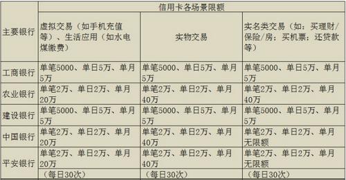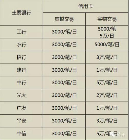 主要銀行信用卡限額: