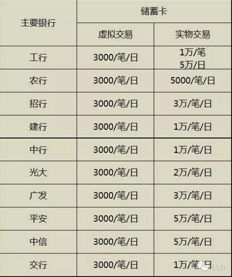 主要銀行儲蓄卡限額: