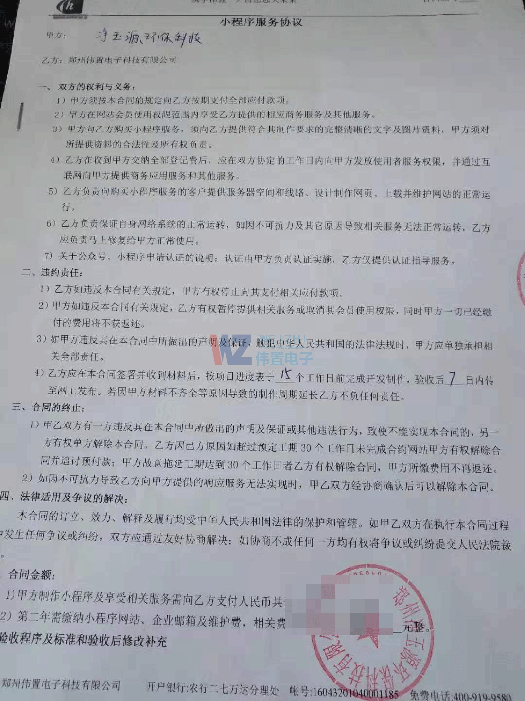 鄭州凈玉源環(huán)保科技有限公司是我們的老客戶,之前客戶與我們公司合作的是400電話辦理,此次,我們偉置電子網(wǎng)站建設(shè)公司又與凈玉源客戶進(jìn)行了更深一步的合作事宜,即小程序。